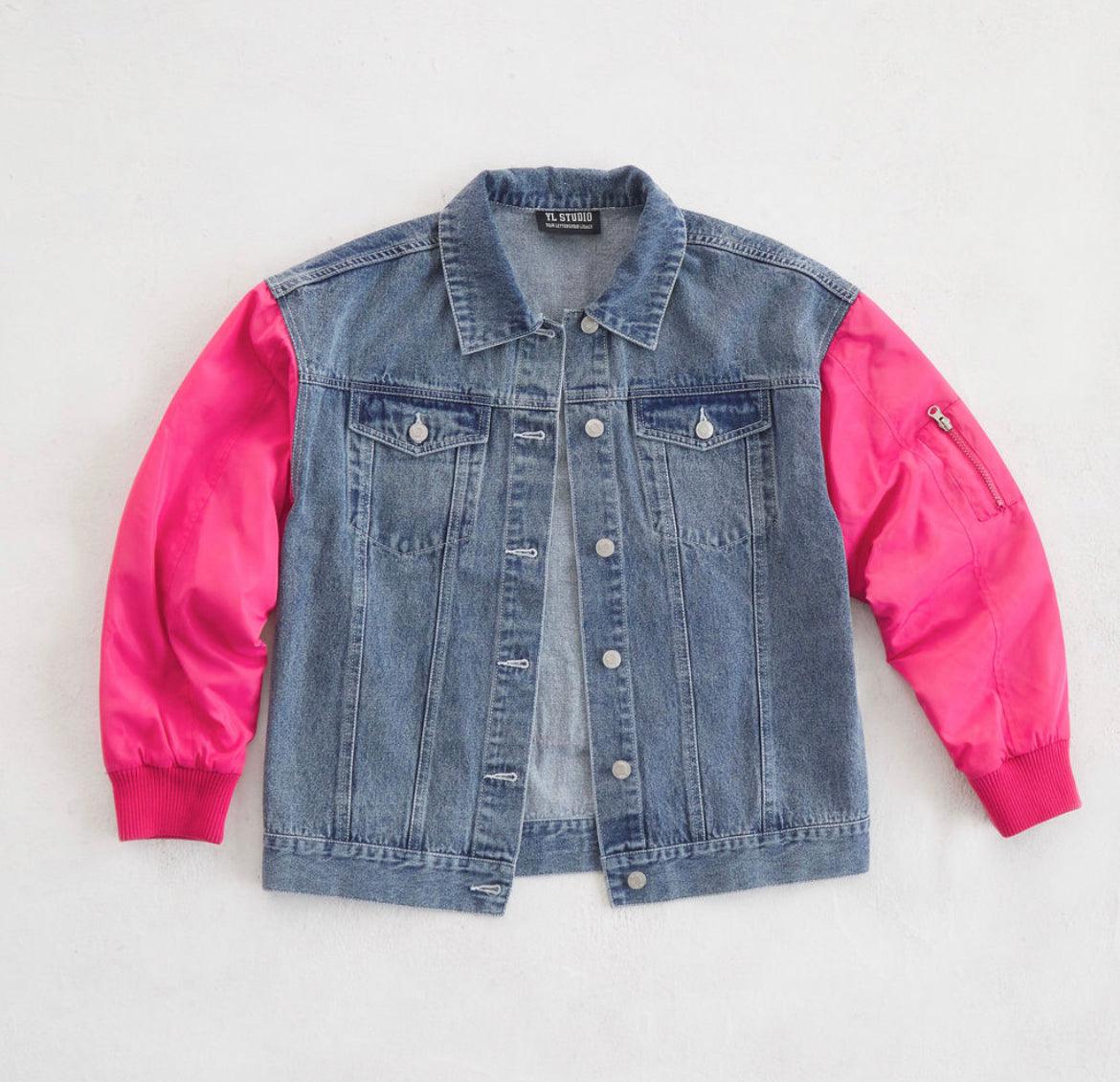 The Statement Denim Bomber - Pink Sleeve w/ NO PATCH
