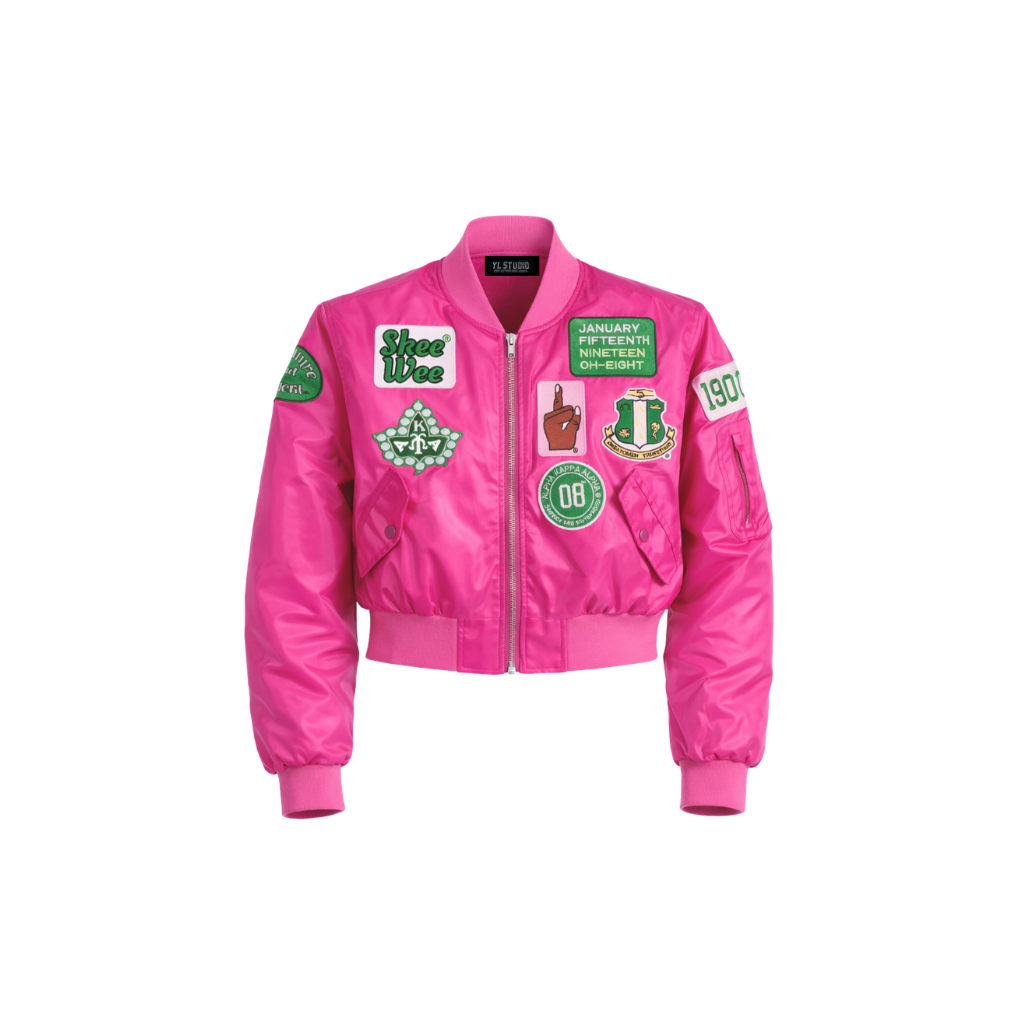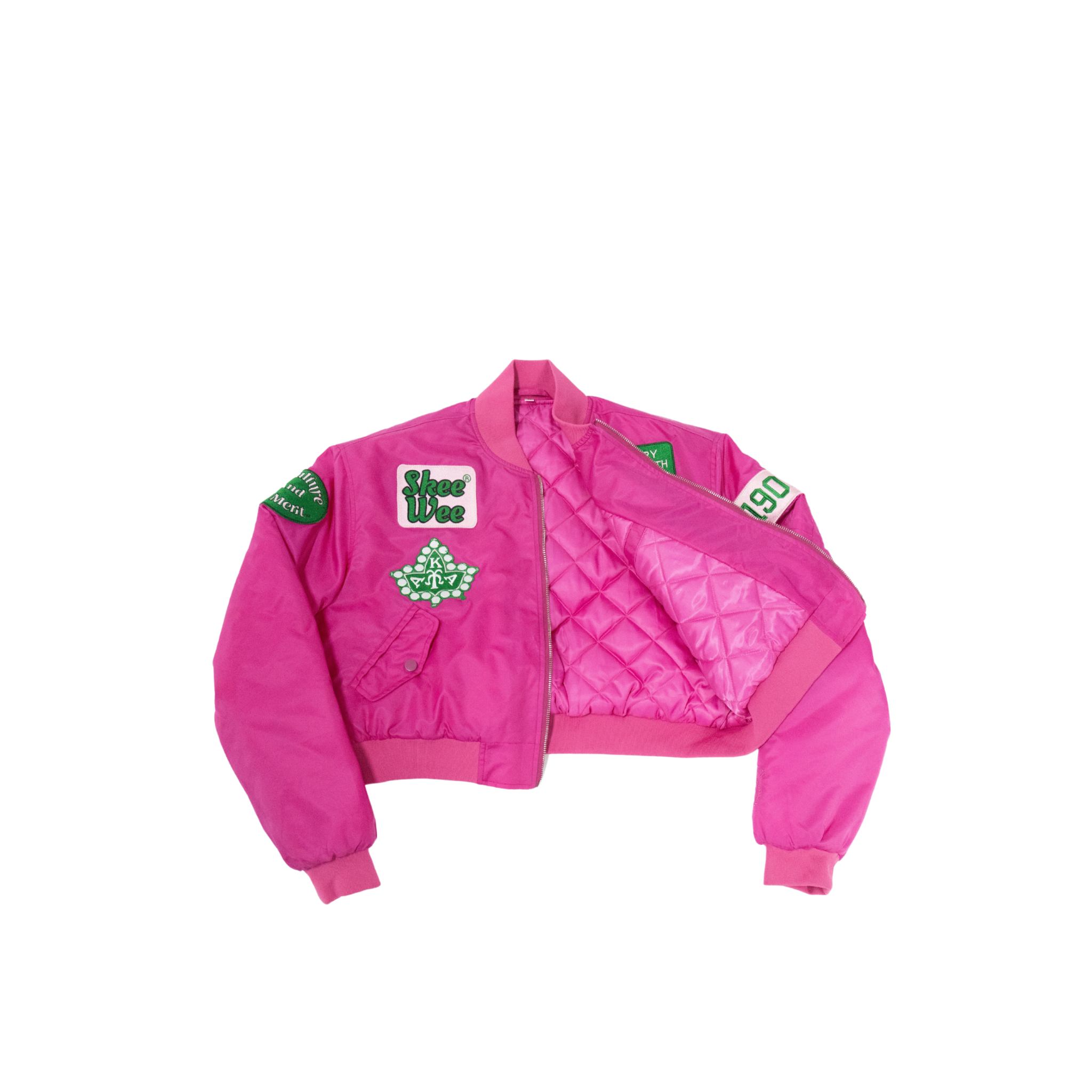 AKA CROPPED NYLON PATCHWORK BOMBER
