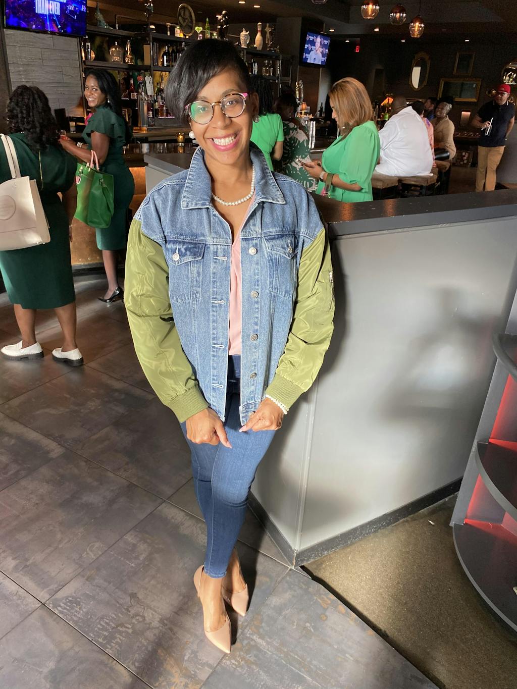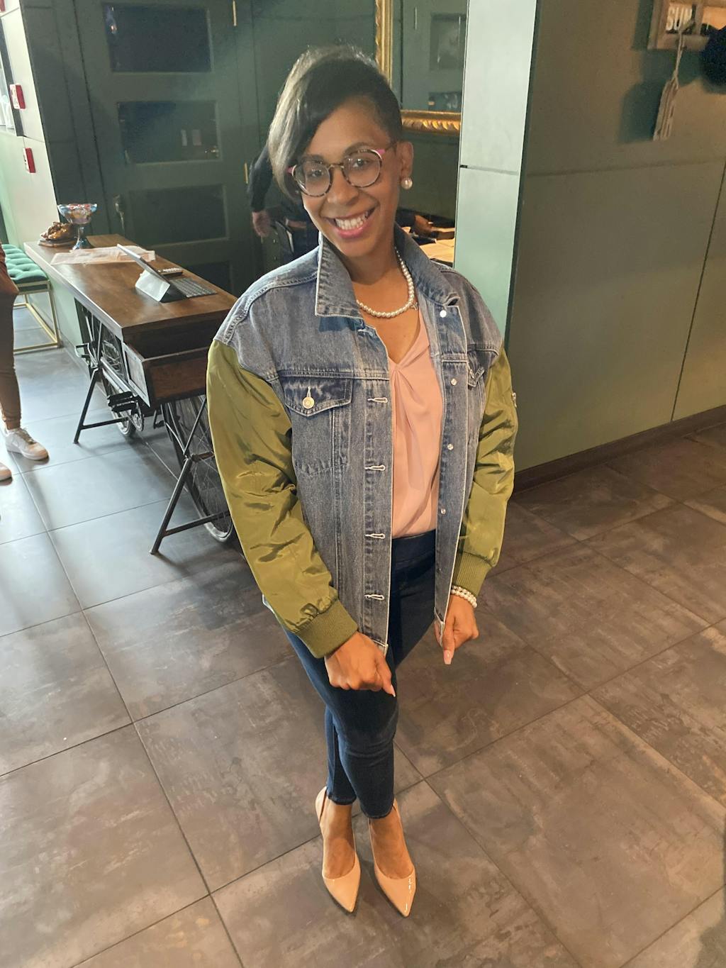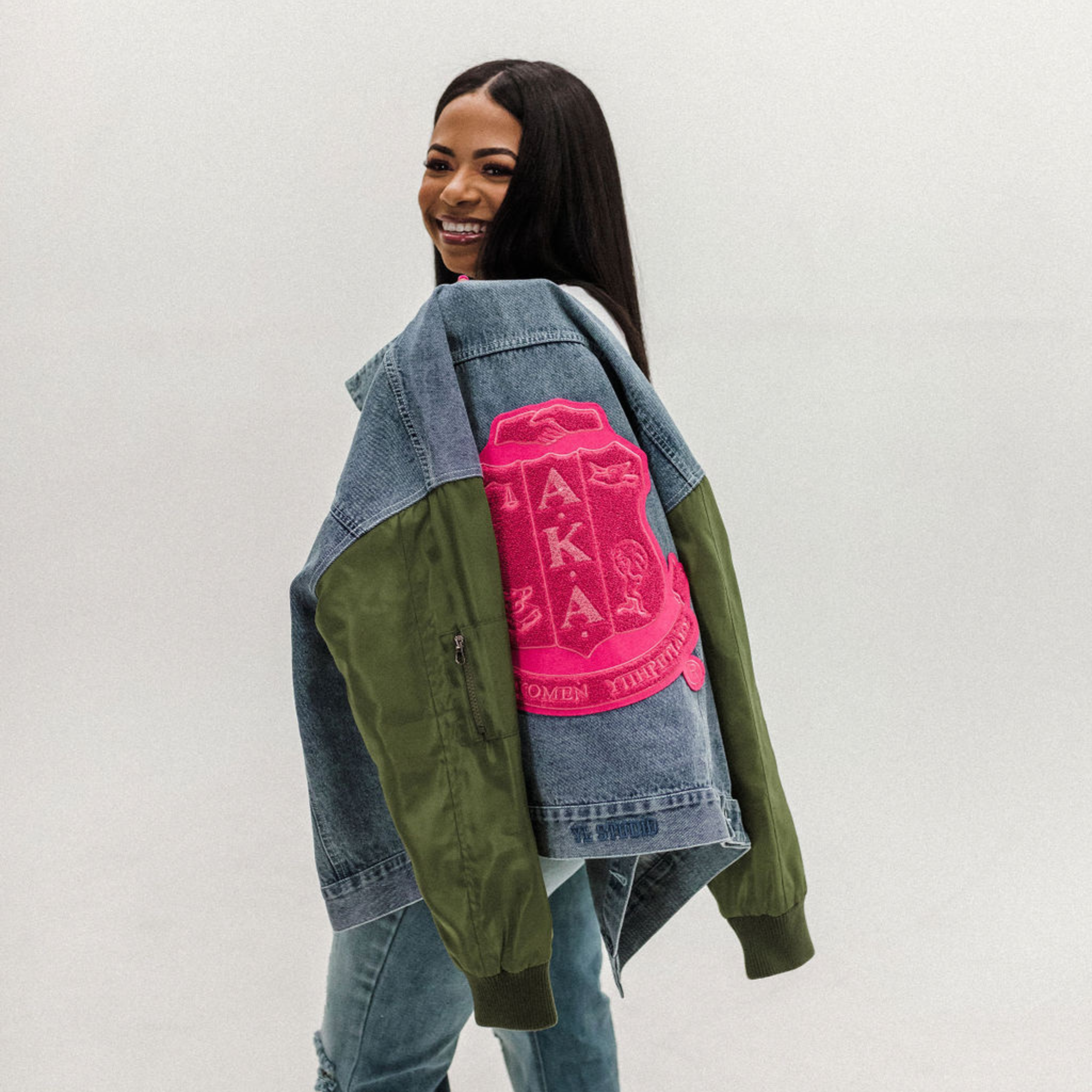 THE STATEMENT DENIM BOMBER - GREEN SLEEVE
