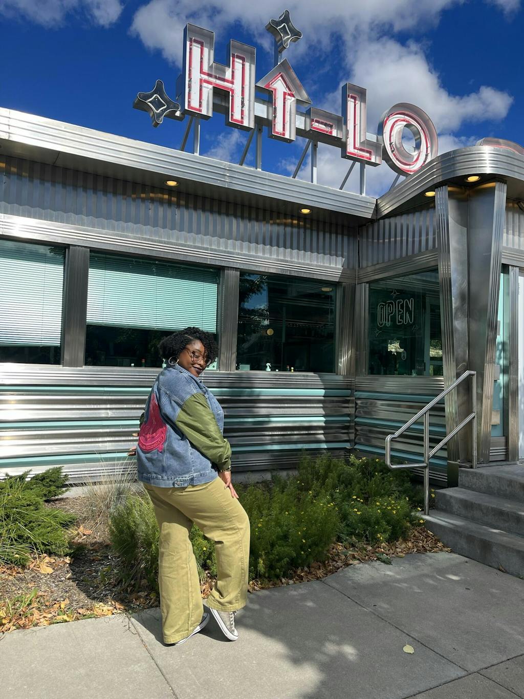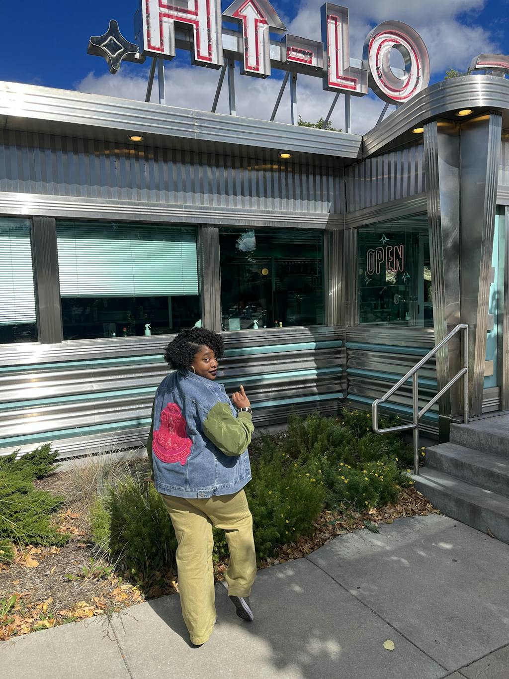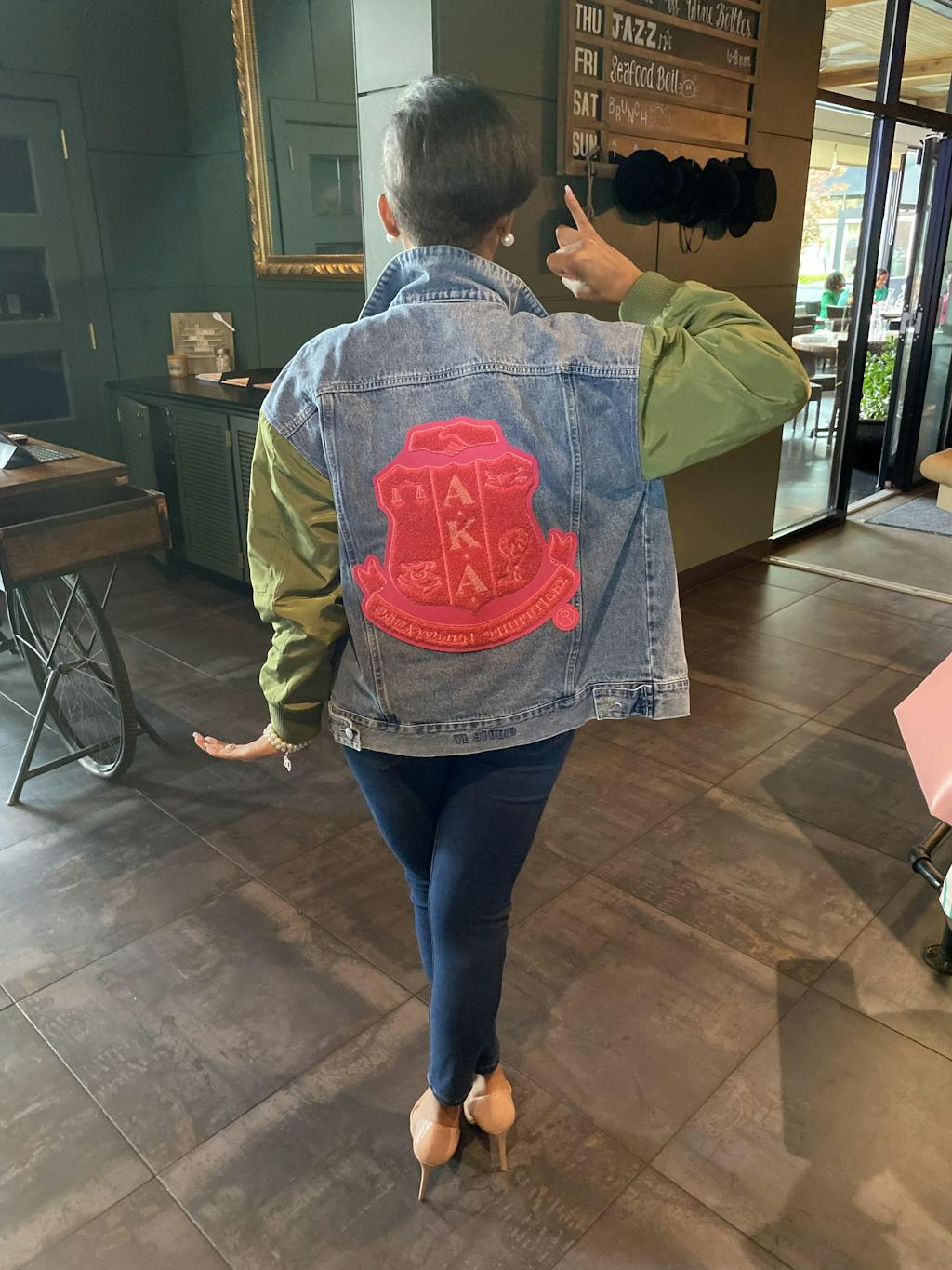 THE STATEMENT DENIM BOMBER - GREEN SLEEVE