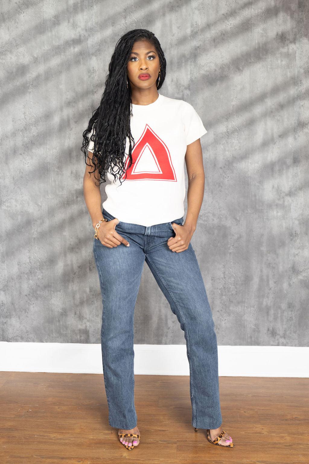 Crimson and Cream! This fitted sweater top is made out of soft cotton fabric. It's super comfortable and can be worn from chapter meeting to brunch.