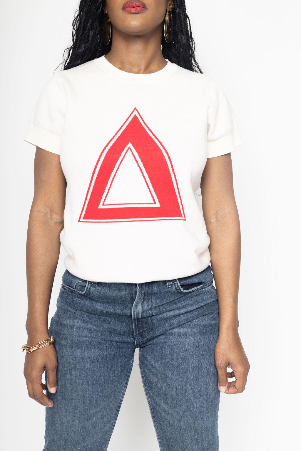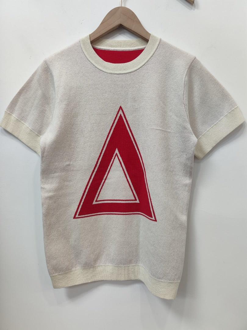 - Cream Cotton Sweater with jacquard red Delta symbol