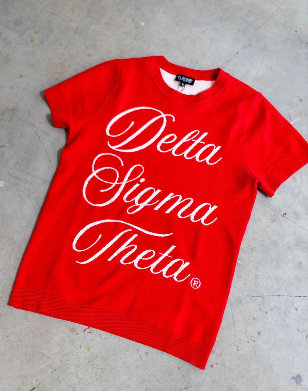 Simple and bright! The short sleeve sweater top is made out of soft cotton fabric. It's super comfortable and can be worn from chapter meeting to brunch.