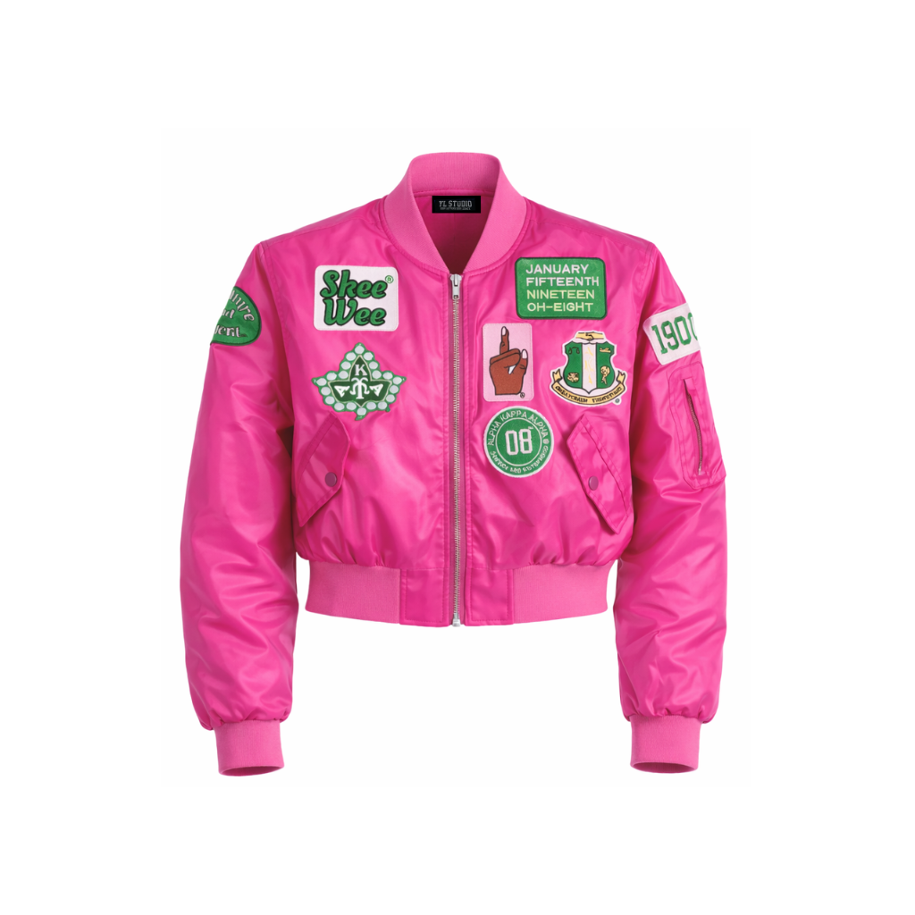 AKA CROPPED NYLON PATCHWORK BOMBER