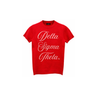 - Red Cotton Sweater with cream jacquard cursive text