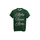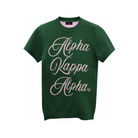 - Green cotton sweater with pink jacquard cursive text