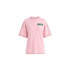 - Pink tee with green accent thread
