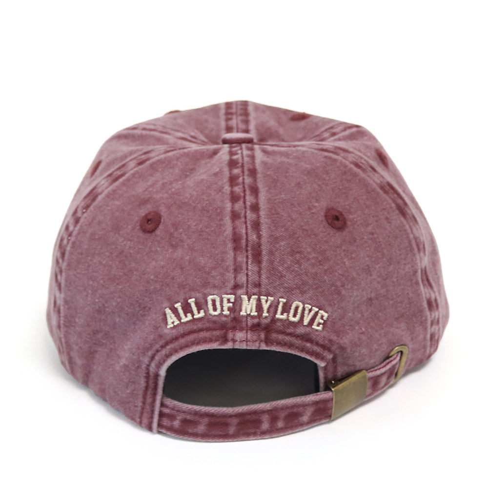 Vintage-washed dad hat with cream embroidery at the front.