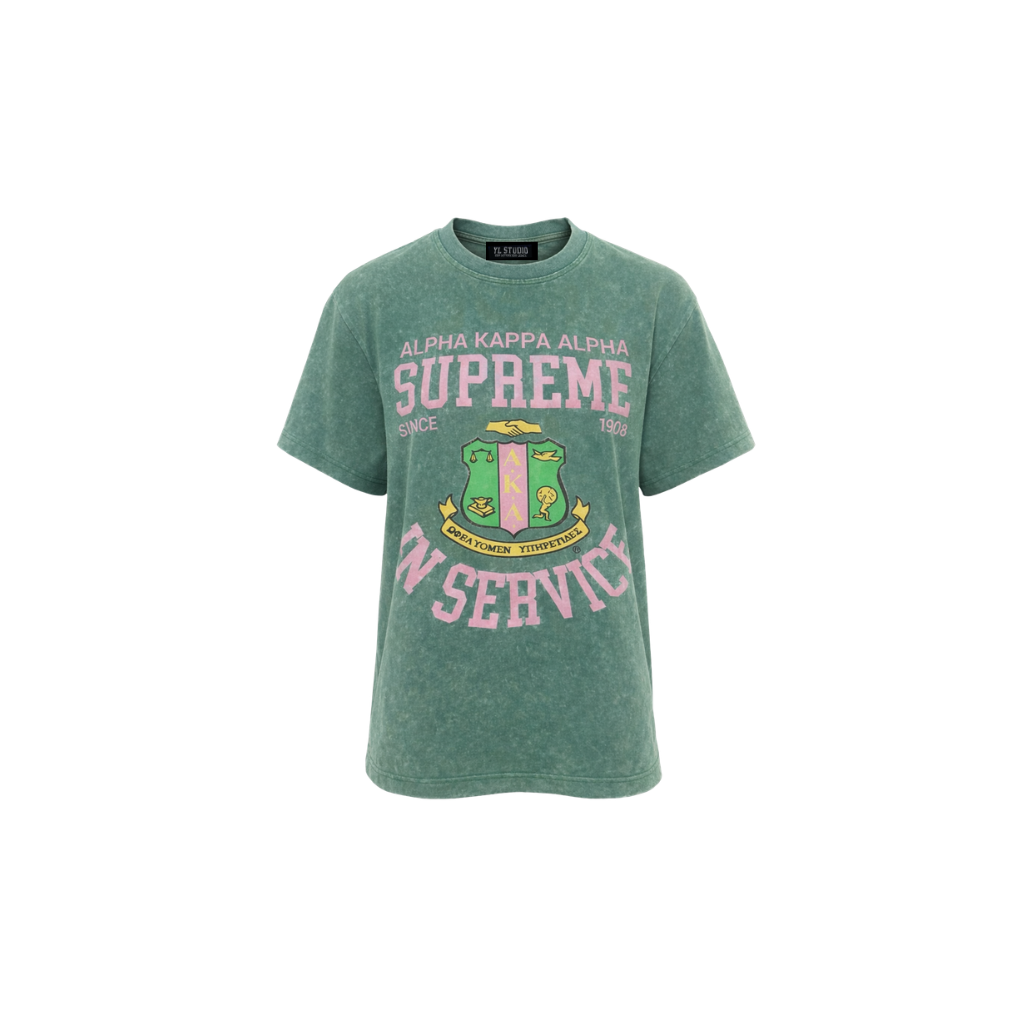 GREEN WASHED SUPREME IN SERVICE GRAPHIC TEE