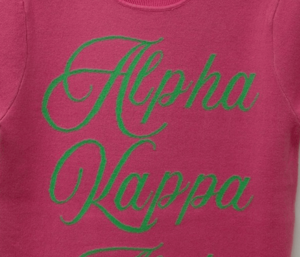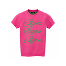 • Pink Cotton Sweater with jacquard cursive text